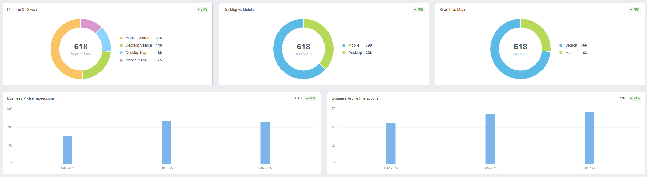 - GMB metrics outperform industry averages, boosting local pack dominance.