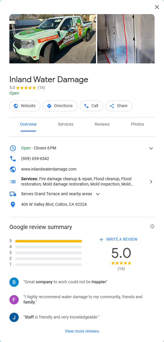 Inland Water Damage provides fast, professional water damage restoration and cleanup services across Colton, CA, and surrounding areas. With a deep understanding of emergency response and property restoration, they focus on delivering high-quality remediation for flood damage, mold inspection, sewage cleanup, and more.