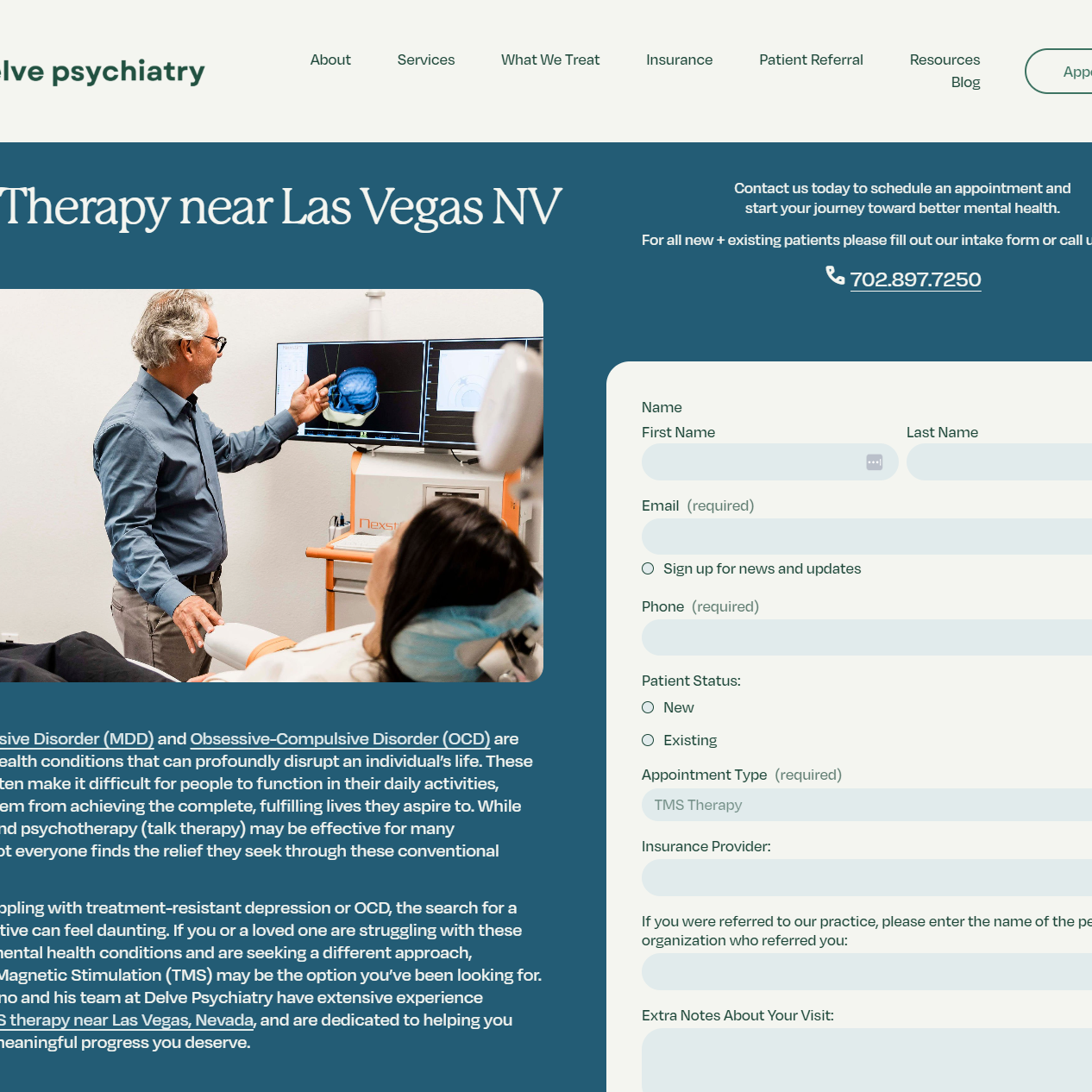 Through strategic SEO, content marketing, GBP management, and authority-building efforts, Delve Psychiatry increased patient inquiries, improved local rankings, and positioned itself as a leader in advanced mental health treatments.
